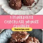 3 Ingredient Chocolate Yogurt Clusters are refreshing, no-bake treats made with Greek yogurt, fresh berries, and melted chocolate. These frozen bites are creamy, fruity, and chocolatey—perfect for a healthy dessert or grab-and-go snack.