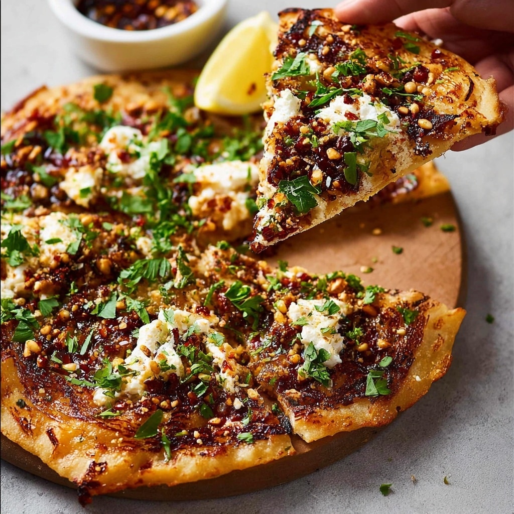 This recipe is ideal for when you’re short on time but craving bold flavor. The aromatic za’atar spice mix combined with good olive oil creates an herby, tangy, and slightly nutty topping that’s absolutely addictive. Whether you’re using pre-made dough or flatbread, this Lebanese pizza delivers authentic flavor fast, with minimal prep and just one bake.