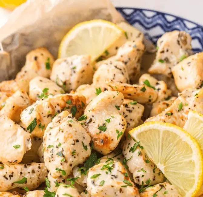 Store leftover lemon chicken bites in an airtight container in the refrigerator for up to 3 days. To reheat, place them in the air fryer at 350°F (175°C) for 3-4 minutes or until heated through. You can also reheat them in a microwave, but they may lose some crispiness.