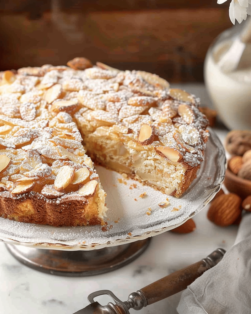 Add fruit preserves: For a little sweetness, spread a layer of fruit jam (like raspberry or apricot) on top of the cake before serving. It complements the almond flavor beautifully.
