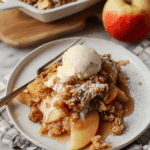 Apple Crisp with Vanilla Ice Cream is a classic dessert featuring warm, cinnamon-spiced baked apples topped with a buttery oat crumble, served with creamy vanilla ice cream. It’s simple, cozy, and perfect for holidays or family dinners.