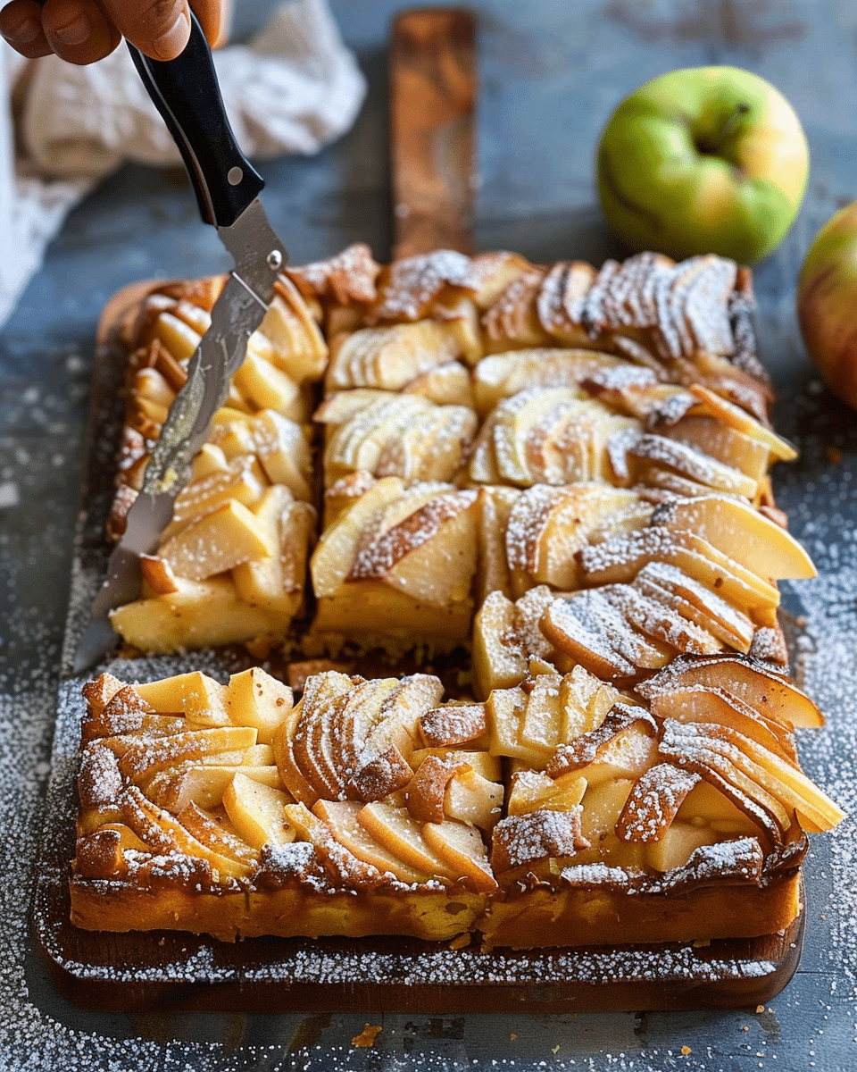 Apple Kuchen is a classic German dessert featuring a soft, buttery cake base topped with tart sliced apples and a sweet cinnamon-sugar topping. Perfect for fall or any time of year, this comforting treat pairs beautifully with coffee or tea.
