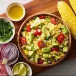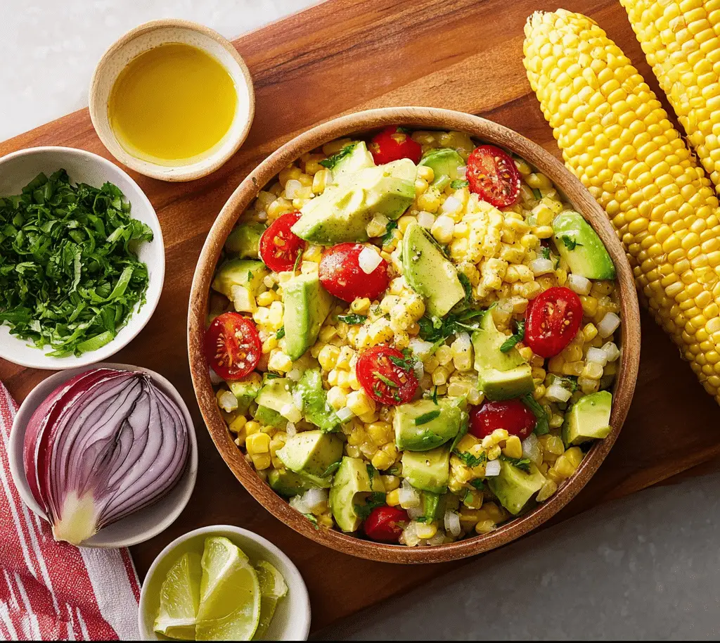 This Avocado Corn Salad is a fresh and vibrant side dish made with creamy avocado, sweet corn, juicy cherry tomatoes, and crisp red onion tossed in a zesty lime dressing. Perfect for summer gatherings, barbecues, or quick healthy meals, this easy avocado corn salad delivers bright flavors and refreshing textures in every bite.