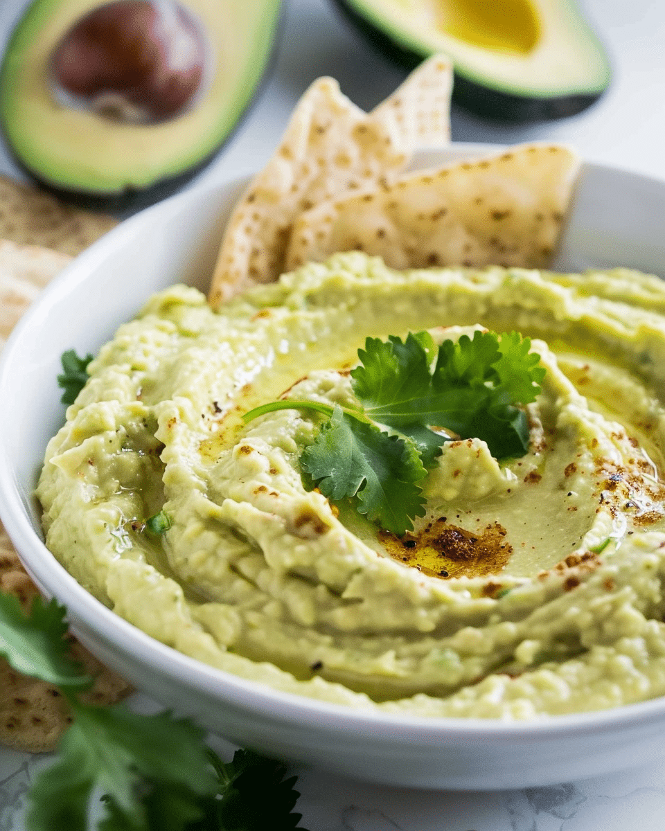 Avocado Hummus is a creamy twist on classic hummus, combining rich avocado with chickpeas, tahini, lemon juice, and garlic. This healthy and flavorful dip is perfect for veggies, pita, crackers, or as a spread, offering a vibrant green color and a buttery taste.