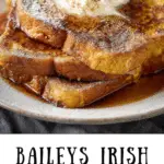 Slightly stale bread works best because it absorbs the custard mixture without falling apart.Avoid soaking the bread too long to prevent soggy French toast.Keep cooked slices warm in a 200°F (95°C) oven if preparing for a crowd.For a non-alcoholic version, replace Baileys with milk or flavored coffee creamer.