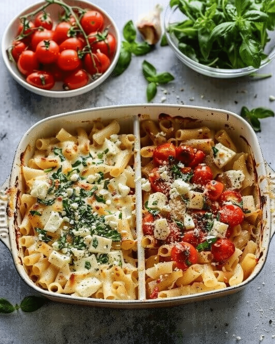 Baked Feta Pasta is a creamy, tangy one-pan dish featuring roasted cherry tomatoes, garlic, and a block of feta cheese, all combined with pasta for an easy and indulgent meal.