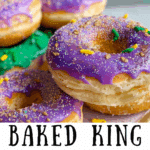 Baked King Cake Donuts are a festive and flavorful twist on the traditional Mardi Gras dessert. These cake-style donuts are baked with warm spices, glazed with a sweet vanilla icing, and topped with colorful purple, green, and gold sanding sugar, making them perfect for celebrations or sweet snacking any time of year.