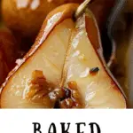 Store leftover baked pears in an airtight container in the refrigerator for up to 3 days. Reheat gently in the microwave or oven until warmed through. They can also be served chilled as a topping for oatmeal or yogurt.