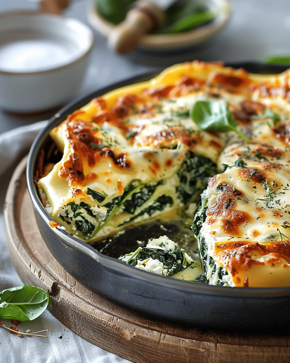 Add meat: For a heartier dish, add cooked ground beef, or turkey to the ricotta-spinach mixture.Cheese swap: Use mascarpone or goat cheese in place of ricotta for a different flavor. Fresh mozzarella can also be added for extra creaminess.Make it vegetarian: Add mushrooms, zucchini, or roasted peppers to the spinach-ricotta filling for added texture and flavor.Gluten-free: Use gluten-free lasagna noodles for a gluten-free version of this dish.