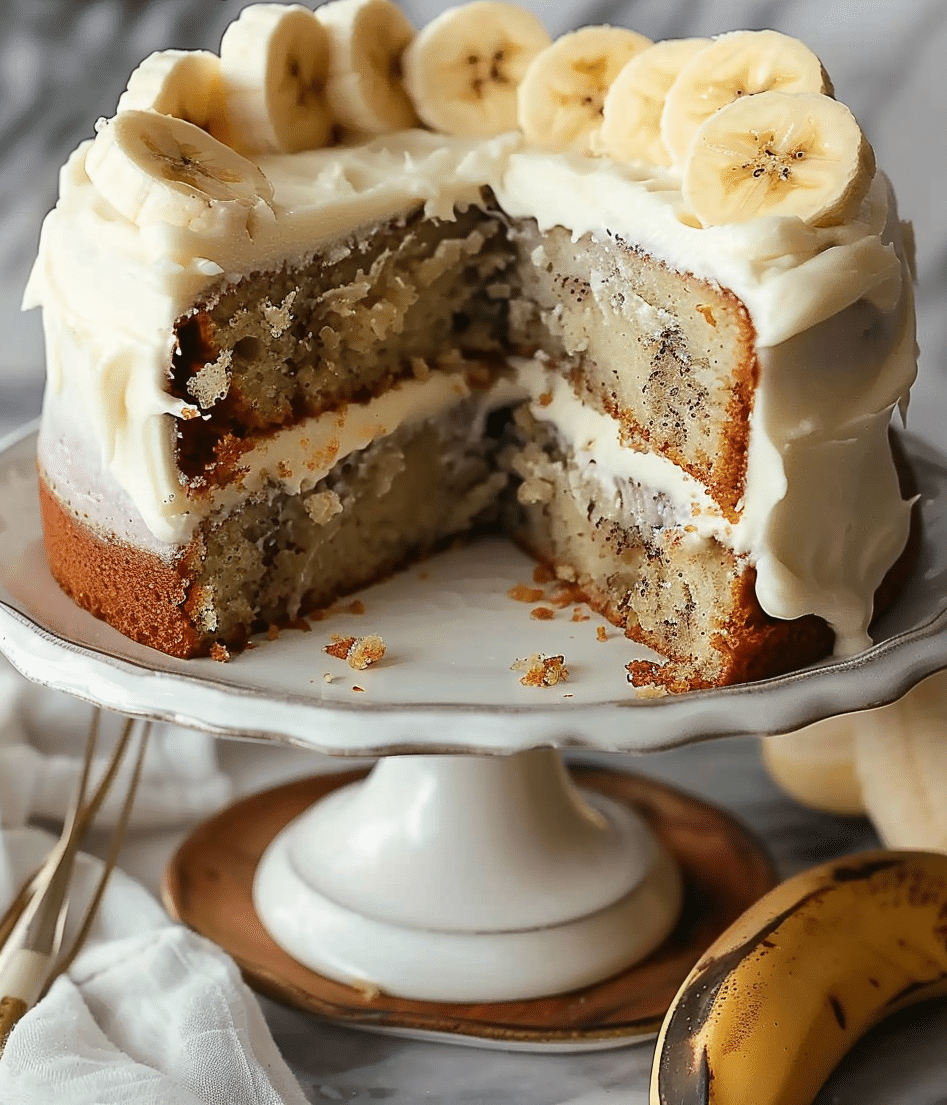 This banana cake with cream cheese frosting is a timeless favorite that’s easy to make and always satisfies. Its soft, flavorful crumb and rich frosting make it perfect for any occasion. Whether you’re a banana bread lover or just craving a cozy homemade dessert, this cake will hit the spot every time.
