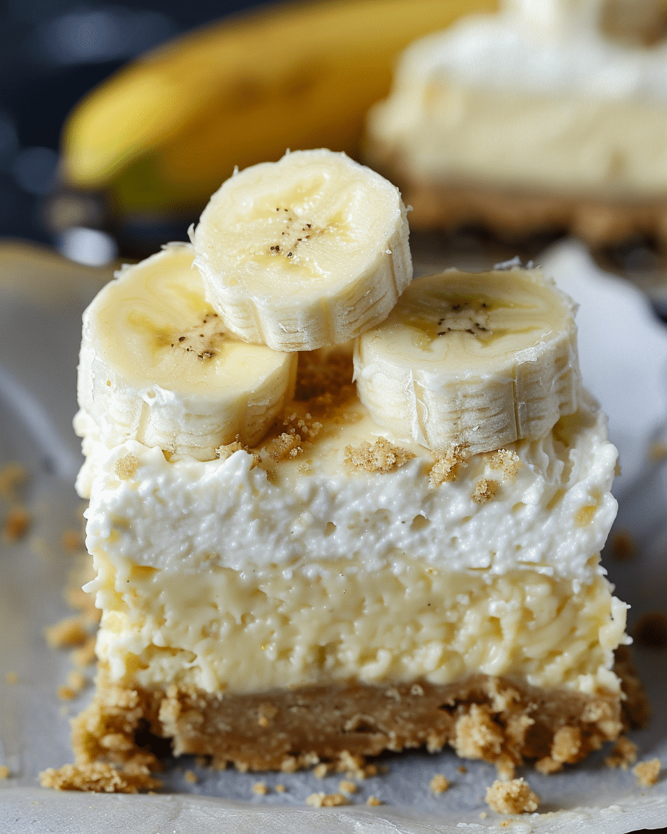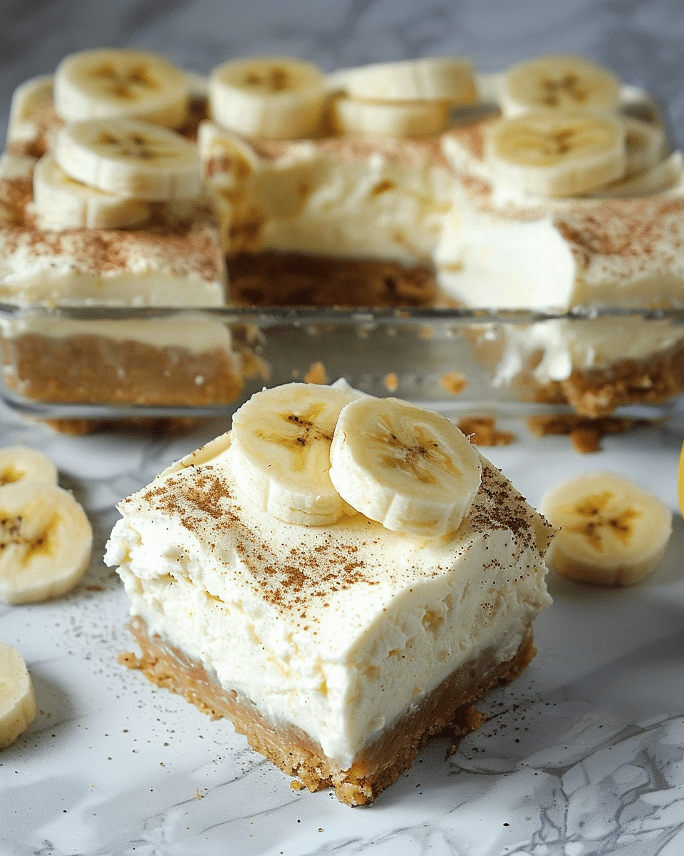 Use ripe bananas for the best flavor and texture.Chill overnight for firmer bars and better flavor.Homemade whipped cream can be used if stabilized.For neat slices, use a sharp knife dipped in hot water and wiped between cuts.Not suitable for freezing due to pudding and whipped topping layers.