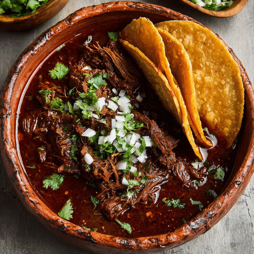 Beef Birria is a rich and authentic Mexican dish made with slow-cooked beef simmered in a deeply spiced chili broth. This homemade beef birria recipe delivers tender, flavorful meat perfect for birria tacos or a comforting stew, packed with smoky, savory, and slightly spicy flavors.