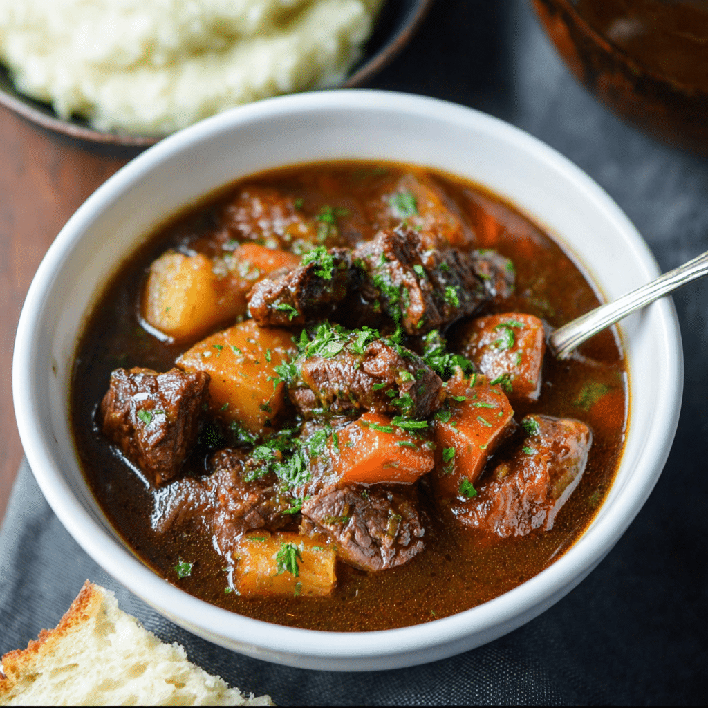This stew is deeply satisfying, with melt-in-your-mouth beef and perfectly cooked vegetables in every bite. Slow cooking allows the flavors to develop beautifully, creating a thick and savory broth. It’s a one-pot meal that’s both nourishing and easy to prepare, and it tastes even better the next day.
