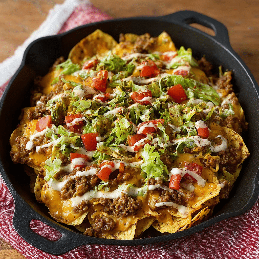 Big Mac Nachos are a bold and indulgent twist on a fast-food favorite, combining seasoned ground beef, melted cheese, crisp toppings, and a creamy special sauce over crunchy tortilla chips. This easy Big Mac nachos recipe is perfect for parties, game nights, or a fun comfort food treat packed with iconic burger flavors.