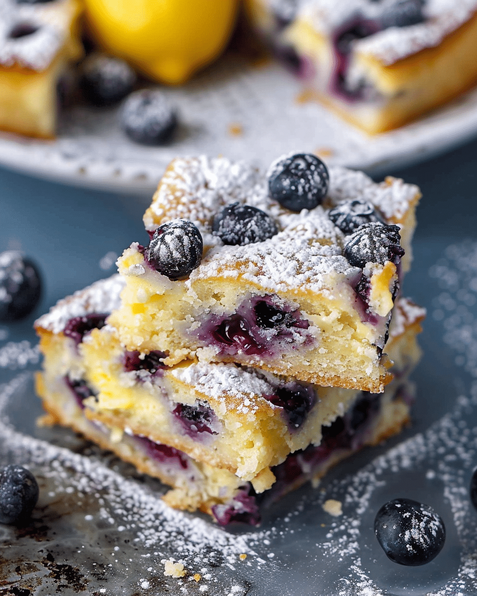 Blueberry Lemon Gooey Butter Cake is a decadent twist on the classic gooey butter cake, featuring a rich, creamy filling with a burst of fresh blueberries and a zesty lemon flavor. With a buttery crust and a soft, gooey center, this dessert is perfect for summer gatherings, potlucks, or any special occasion.