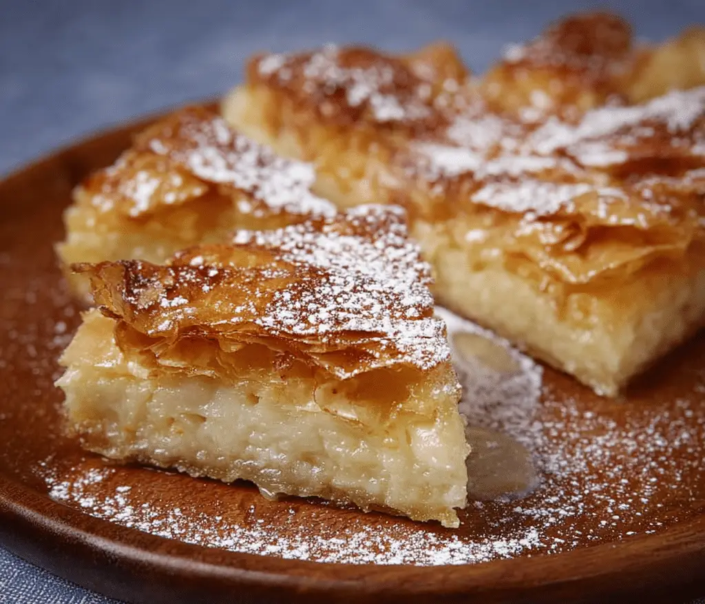 Bougatsa is a traditional Greek custard pie made with crispy, buttery phyllo pastry and a creamy semolina filling. This easy homemade bougatsa recipe is perfectly sweet, lightly spiced with cinnamon, and ideal for breakfast or dessert.