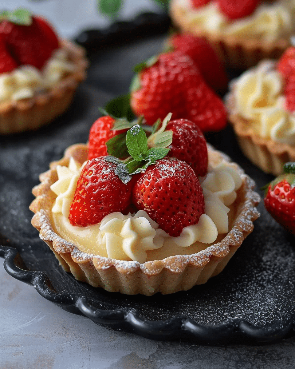 These tartlets are visually stunning, delightfully fresh, and absolutely delicious. The crisp pastry contrasts beautifully with the smooth, sweet cream and the natural tartness of strawberries. Perfect for parties, tea-time, or romantic dinners, they’re also customizable and can be made in advance. Whether you’re entertaining guests or treating yourself, these little tarts are guaranteed to impress.