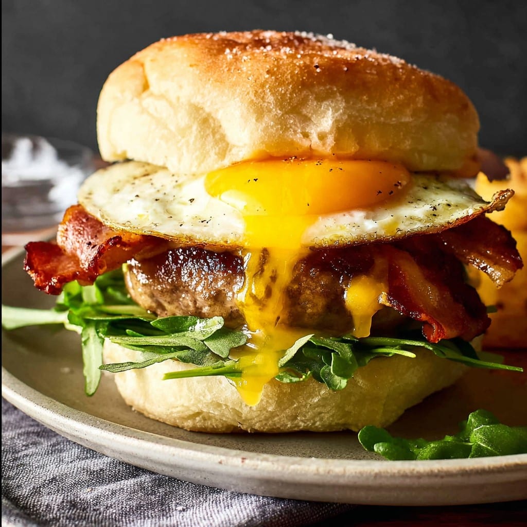 (Tip: You’ll find the full list of ingredients and measurements in the recipe card below.) • Ground beef (or turkey/plant‑based alternative) • Salt and pepper • Burger buns • Eggs • • Cheese slices (cheddar, American, or your favorite) • Butter or oil for cooking • Lettuce or baby spinach (optional) • Tomato slices (optional) • Sauce: ketchup, mayonnaise, aioli, or breakfast sauce (optional)