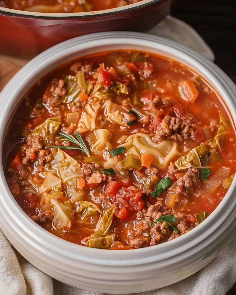 Cabbage roll soup is a cozy, hearty recipe that brings all the comforting flavors of traditional stuffed cabbage rolls in an easy-to-make soup. With its savory broth, tender cabbage, and wholesome ingredients, it’s a perfect family meal that’s both nourishing and satisfying. This one-pot dish is a great way to enjoy a classic comfort food with less effort and all the flavor.