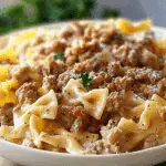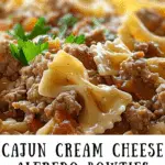 Cajun Cream Cheese Alfredo Bowties with Spiced Ground Beef is a bold, creamy pasta dish featuring bowtie pasta tossed in a rich Cajun Alfredo sauce and topped with spiced ground beef. It’s a comforting and flavorful twist on traditional pasta meals.
