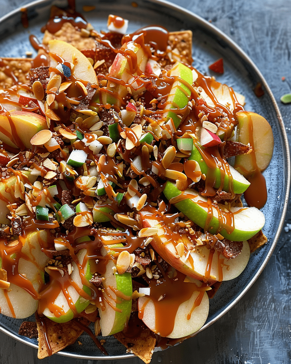 Caramel apple nachos are a fun, no-bake treat featuring crisp apple slices drizzled with caramel and melted chocolate, then topped with your favorite sweets like nuts, marshmallows, or sprinkles. It’s a fast, customizable dessert perfect for parties, snacks, or fall-themed gatherings.