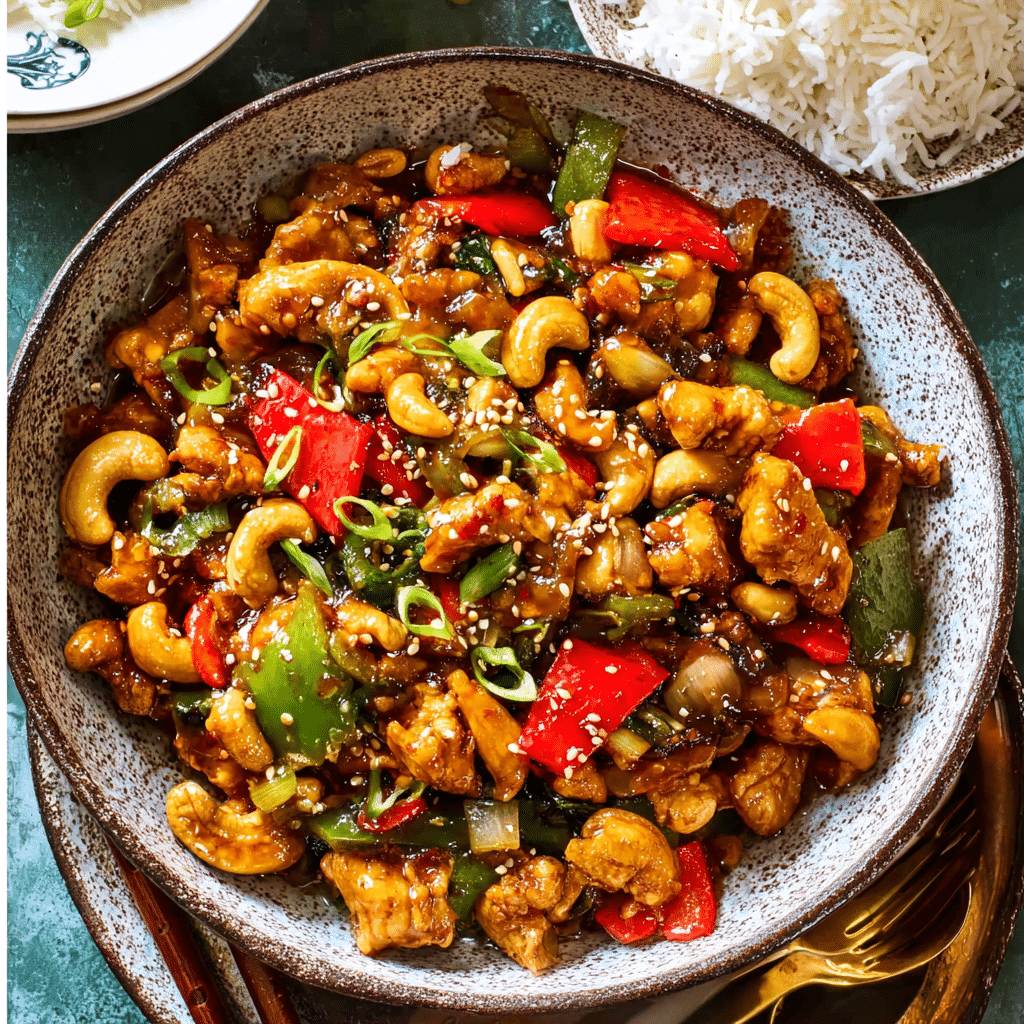 This Cashew Chicken Stir Fry is a quick and flavorful dish featuring tender chicken, crunchy cashews, and crisp vegetables tossed in a savory, slightly sweet sauce. Perfect for busy weeknights, this easy stir fry recipe is a delicious and satisfying homemade meal.