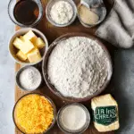 (Tip: You’ll find the full list of ingredients and measurements in the recipe card below.) all-purpose flour baking powder salt milk eggs butter (melted) cheddar cheese (shredded) garlic powder (optional) fresh herbs like chives or parsley (optional)