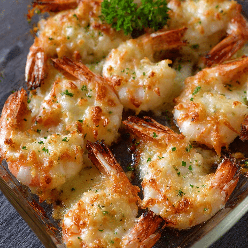This dish comes together quickly while delivering restaurant-quality flavor. The tiger shrimp remain plump and tender, while the creamy, cheesy topping adds indulgent richness. It’s baked in one dish for easy cleanup and pairs beautifully with rice, pasta, or crusty bread. Whether you’re entertaining guests or preparing a comforting meal at home, this recipe is guaranteed to satisfy seafood lovers.