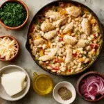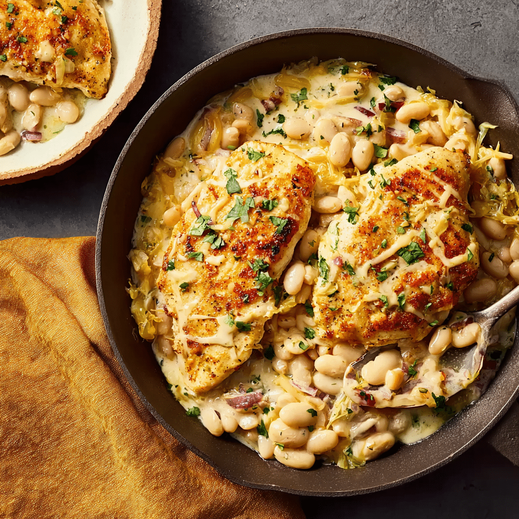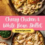 Cheesy Chicken & White Bean Skillet is a hearty one-pan dinner packed with tender chicken, creamy white beans, savory tomatoes, and melted cheese. This easy chicken and white bean skillet recipe comes together in just 30 minutes, making it perfect for busy weeknights. Loaded with protein and comforting flavors, this cheesy chicken skillet is a satisfying, family-friendly meal with minimal cleanup.