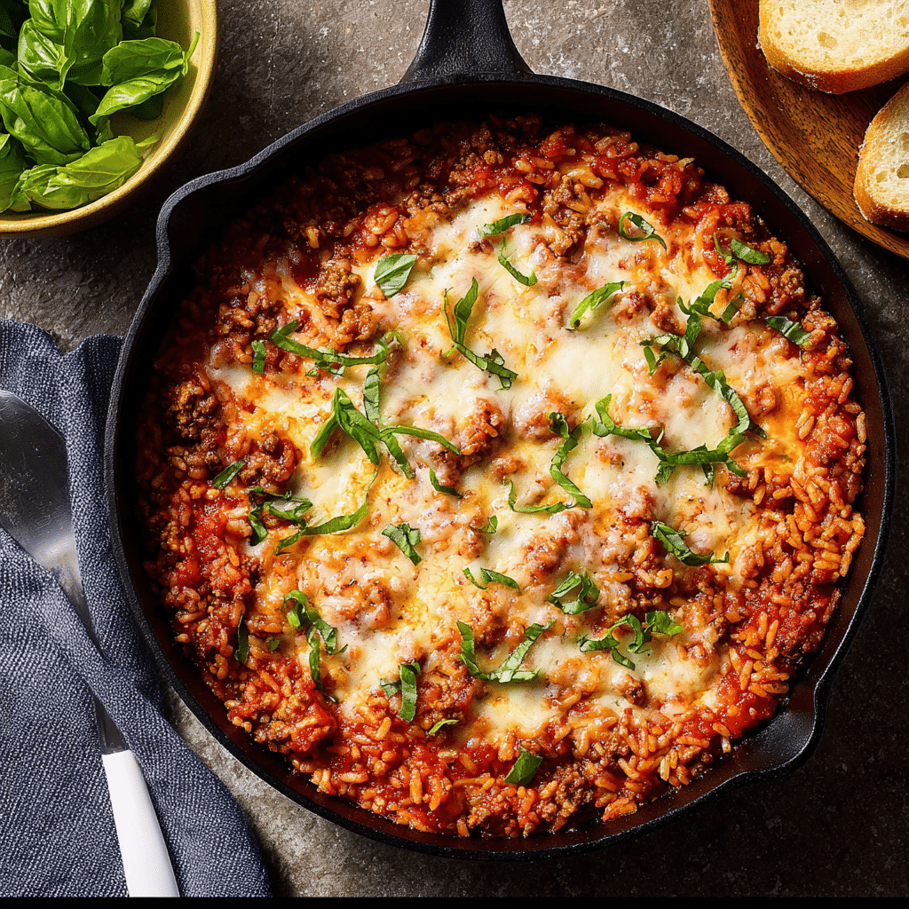 Cheesy Ground Turkey Rice Skillet with Marinara Sauce is a comforting, flavorful, and practical meal that comes together in one pan. With tender rice, savory turkey, rich tomato sauce, and melted cheese, it’s a satisfying recipe you’ll turn to again and again for easy family dinners.