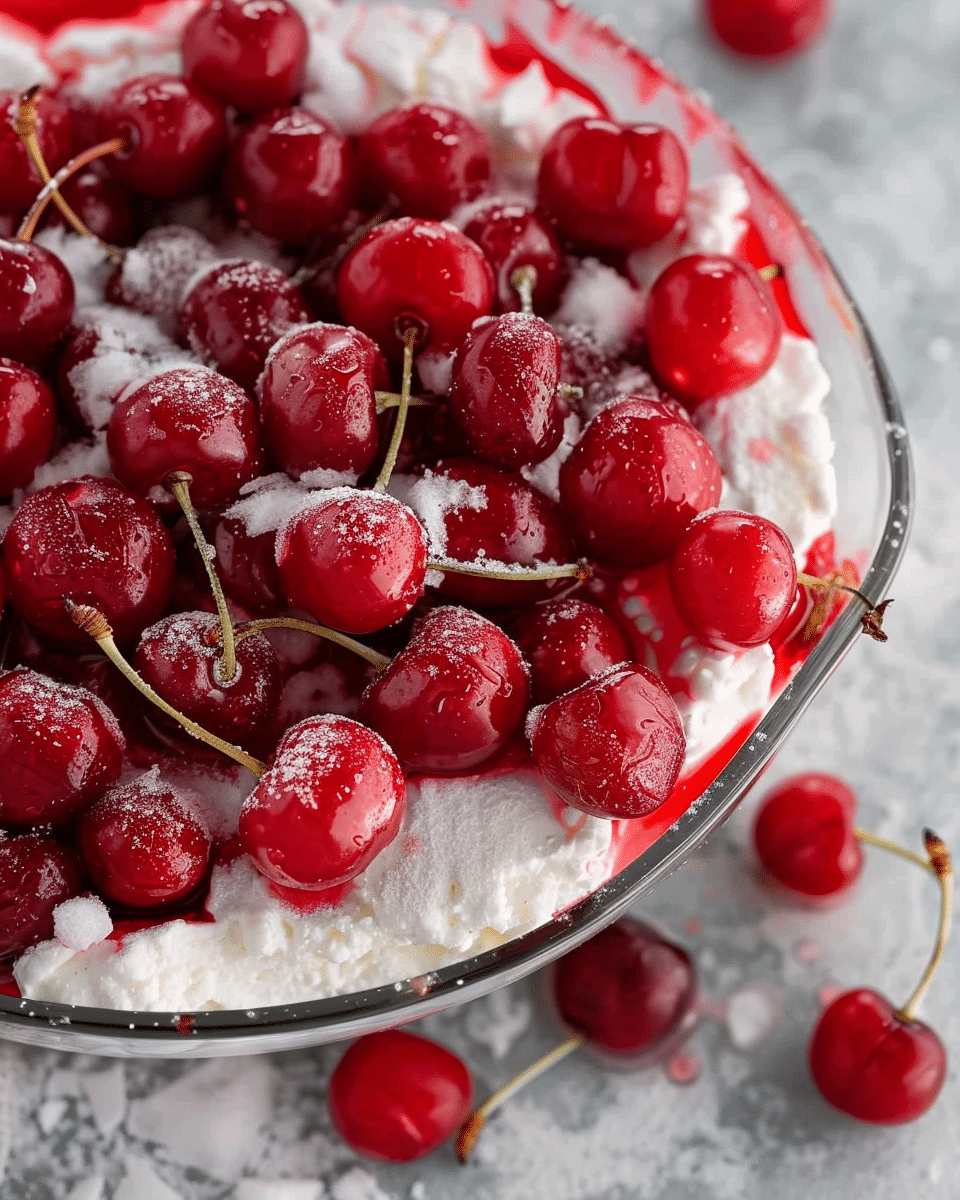 Cherries in the Snow is the perfect balance of sweet and tart, with a cool, creamy texture that melts in your mouth. The cherries provide a pop of fruity freshness, while the creamy layer adds richness without being overly heavy. This dessert is easy to prepare and can be made ahead of time, making it ideal for parties or gatherings. The combination of colors and flavors will impress your guests, and the best part is that it’s incredibly simple to make. Whether you love cherries or just want a beautiful and refreshing dessert, this treat is sure to delight!