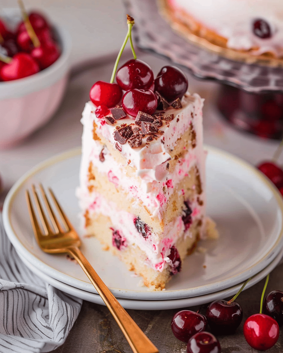 This Cherry Chip Cake is a sweet, moist, and flavorful treat that’s perfect for any occasion. Whether you’re celebrating a birthday, a special holiday, or just enjoying a fun dessert with family and friends, this cake will definitely make an impression. The combination of cherries, cake, and frosting creates a memorable dessert that’s both easy to make and delicious. Try it today and enjoy a slice of fruity, creamy bliss!