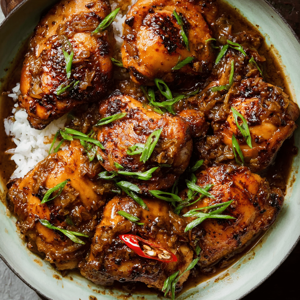 This recipe is incredibly flavorful with a perfect balance of salty, tangy, and slightly sweet notes. The slow simmering process makes the chicken tender and juicy while allowing the sauce to deepen and intensify. It’s easy to prepare with pantry staples and tastes even better the next day, making it ideal for meal prep or family dinners.