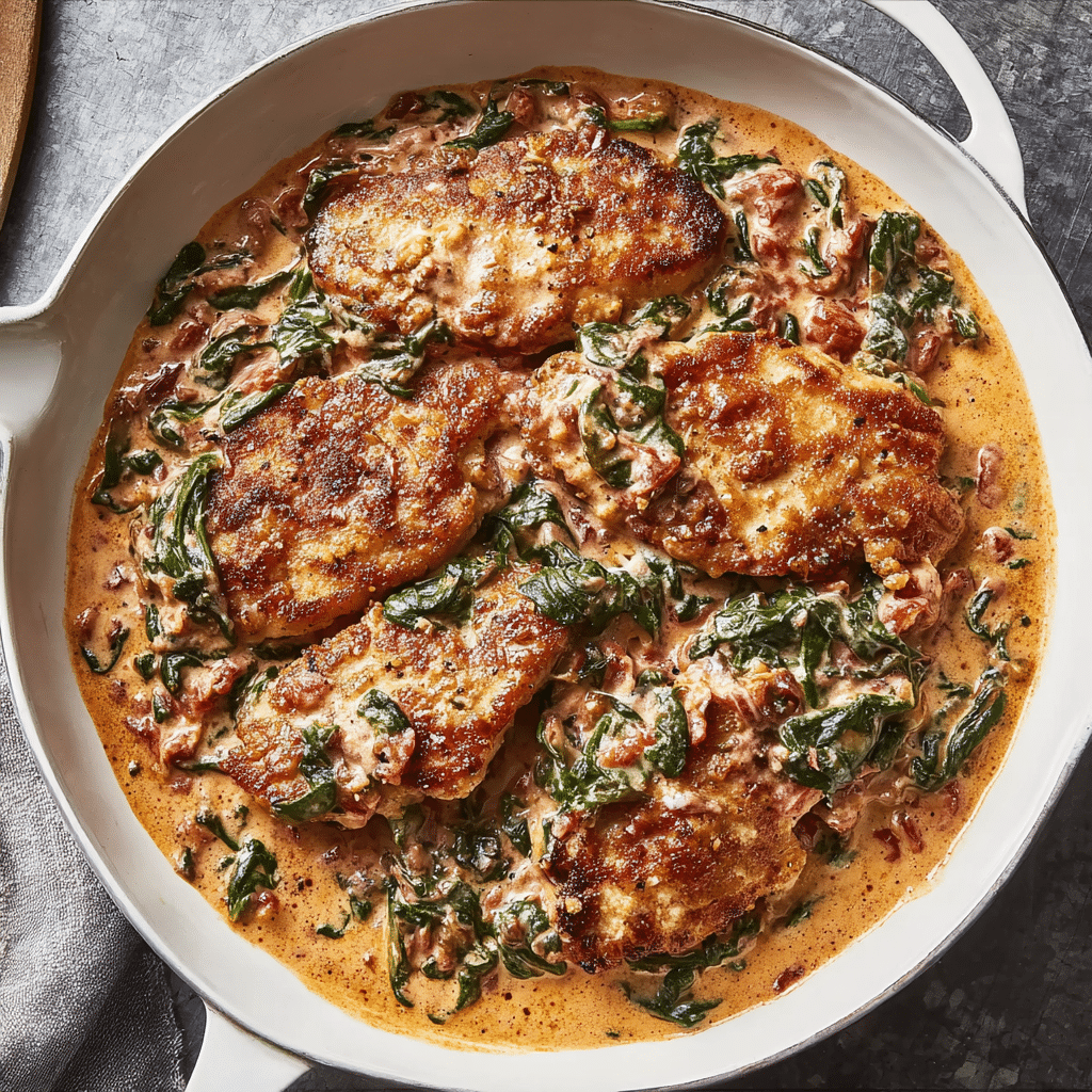 Combine: Return the chicken to the skillet and spoon the creamy spinach sauce over the top. Simmer for 3–5 minutes to blend flavors.
