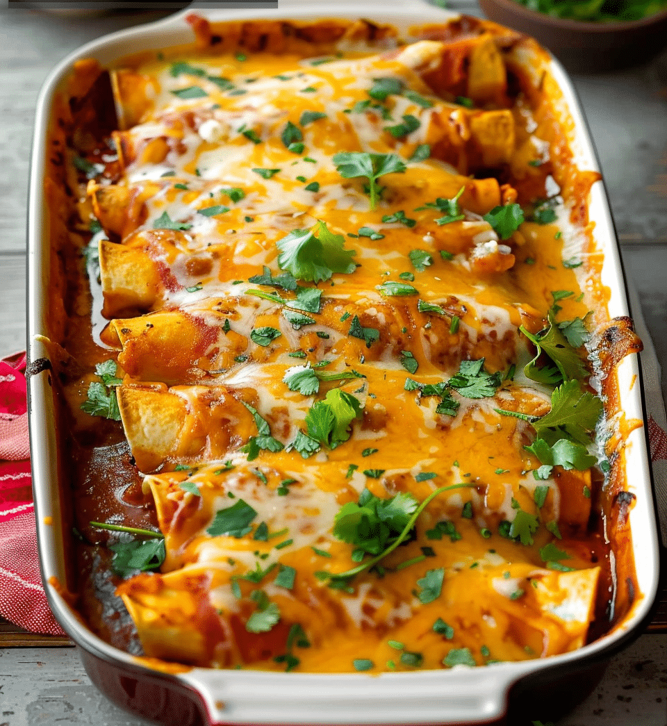 Chicken Enchiladas are a comforting and flavorful Mexican dish with tender chicken wrapped in corn tortillas, smothered in rich enchilada sauce, and topped with melted cheese. This easy-to-make casserole is perfect for busy weeknights or festive gatherings. Customize the spice level and toppings to your liking for a meal that’s both delicious and satisfying!