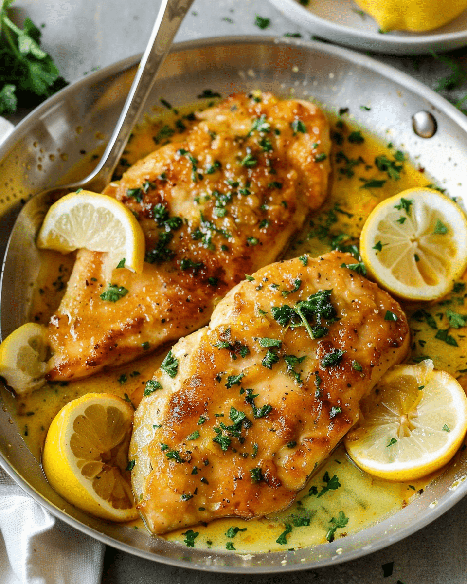 Use gluten-free flour to make the recipe gluten-free.Don’t overcrowd the pan when frying—work in batches for best results.If not using wine, replace with more chicken broth and a splash of white wine vinegar or lemon juice.Add capers for extra tang, or fresh herbs like thyme for variation.To thicken the sauce slightly, stir in a small flour-butter paste or cornstarch slurry.