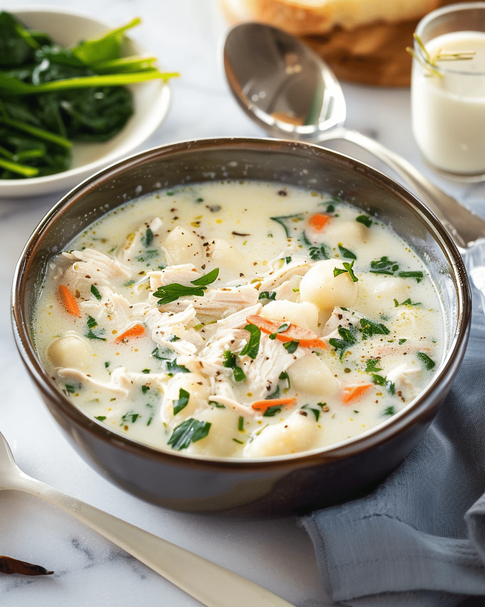 This soup is everything you want in a one-pot meal: warm, creamy, and loaded with textures and flavors. The gnocchi gives it a comforting heartiness, while the chicken and vegetables add nutrition and substance. It’s easy to make, family-friendly, and great for leftovers or meal prep. Plus, it tastes like it came straight from your favorite café.