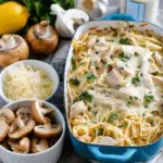 Chicken Tetrazzini is a creamy pasta casserole featuring tender chicken, mushrooms, and noodles in a rich cheese and white wine sauce. Baked until bubbly and golden, it’s comforting and satisfying.