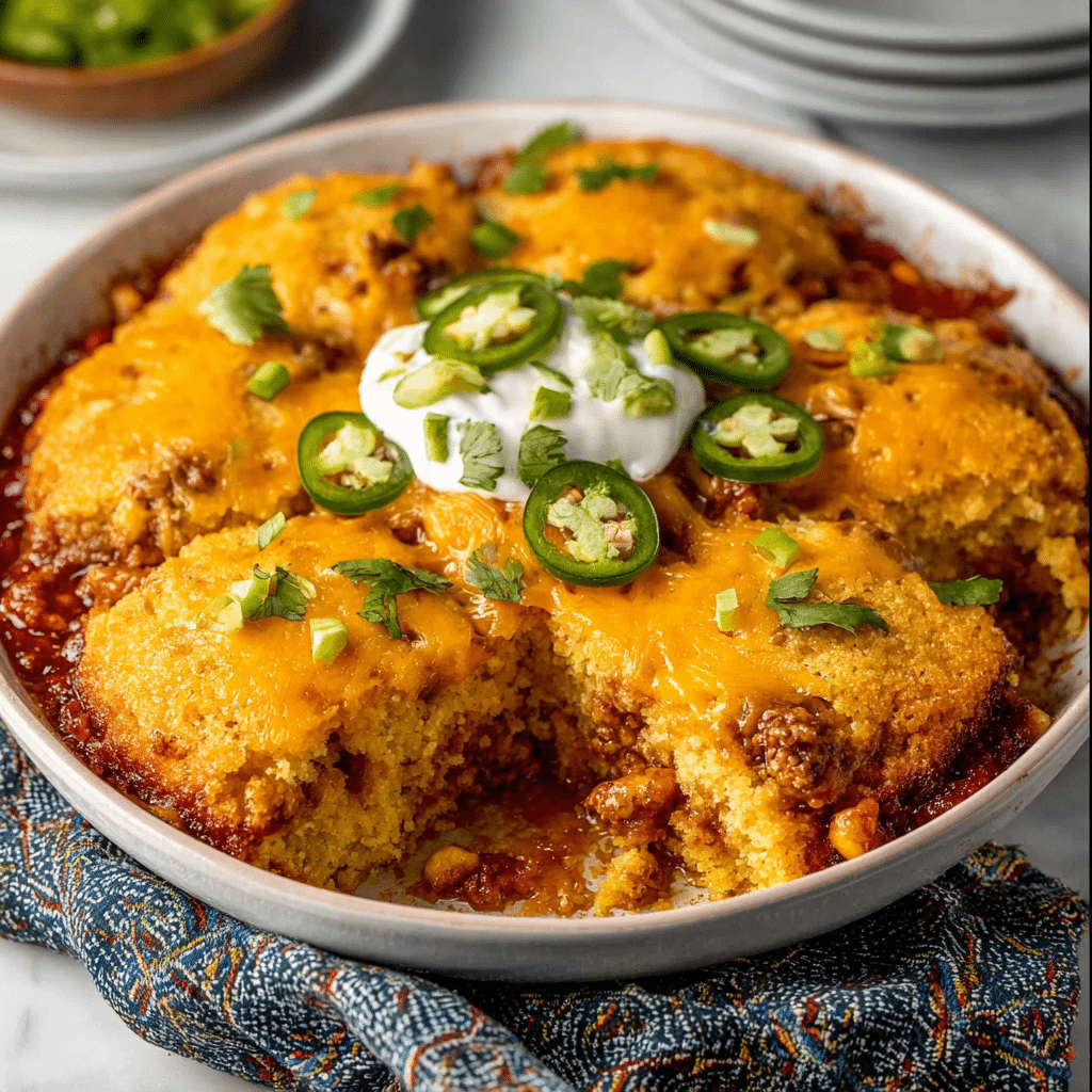 Chili Cornbread Casserole is a cozy, all-in-one comfort food dish that layers hearty chili beneath a golden, fluffy cornbread topping — perfect for family dinners, potlucks, or chilly nights.