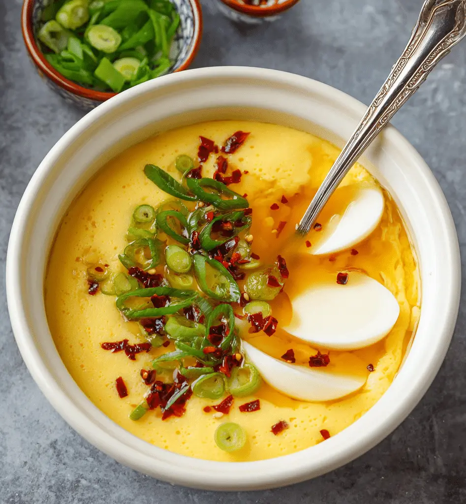 Chinese steamed eggs are a silky, savory egg custard gently steamed to create an ultra-smooth, comforting texture. This light and nourishing dish is perfect for breakfast, lunch, or a simple side.