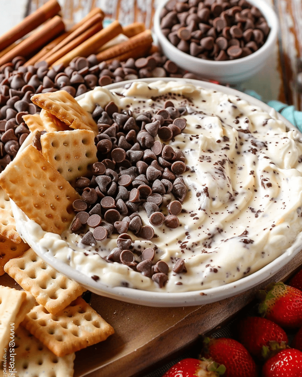 This dip brings together the best of both dessert worlds — the smooth, tangy flavor of cheesecake and the classic charm of chocolate chip cookies. It’s quick to prepare, requires no baking, and can be served with an array of dippers from fruit to cookies. Whether you’re entertaining guests or looking for a satisfying sweet treat, this dip delivers with minimal effort and maximum flavor.