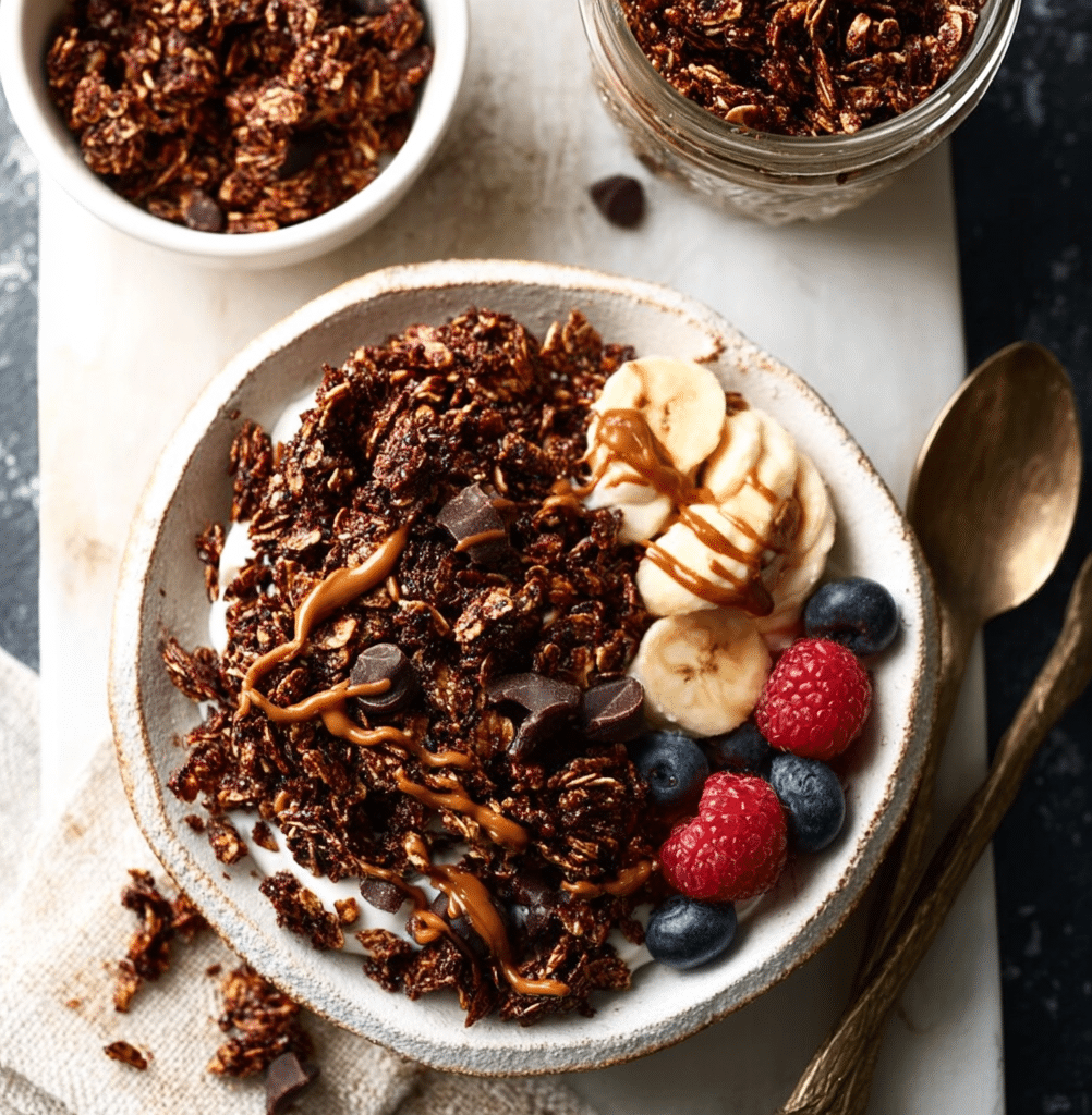 This chocolate peanut butter granola is a crunchy, wholesome snack packed with rich cocoa flavor and creamy peanut butter. Perfect for breakfast, yogurt toppings, or on-the-go snacking, this easy homemade granola is healthier, customizable, and irresistibly delicious.