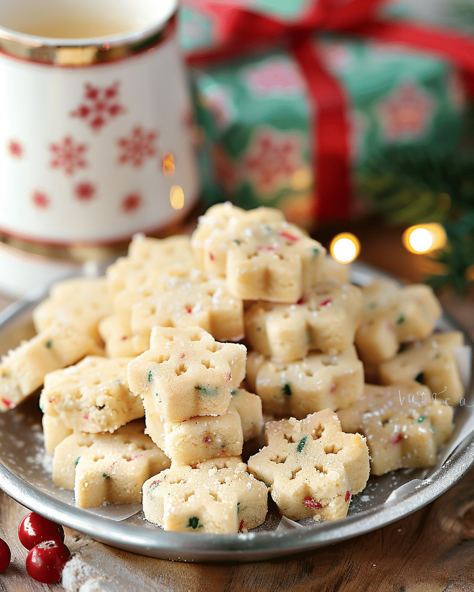 Christmas Shortbread Cookie Bites are festive, buttery, bite-sized treats with a melt-in-your-mouth texture and colorful sprinkles, perfect for holiday cookie trays and gifting.