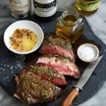 Heat oil or butter in a heavy skillet over medium-high heat. Sear steaks for 3–4 minutes per side for medium-rare, or adjust to desired doneness. Remove steaks and tent with foil.