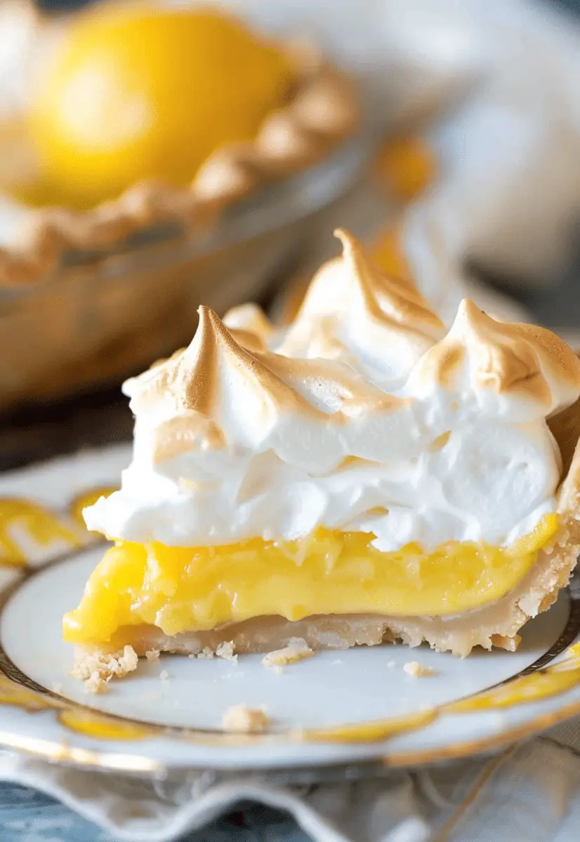 Always spread meringue over hot filling to help it adhere and prevent weeping.For neat slices, dip a sharp knife in hot water and wipe clean between cuts.Use fresh lemon juice for best flavor—bottled juice lacks brightness.Do not freeze this pie—meringue will weep and separate.Best enjoyed within 1–2 days for ideal texture.