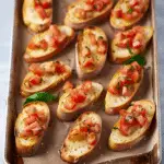 This classic tomato bruschetta is incredibly easy to make and requires only a few pantry staples and fresh ingredients. It’s light yet satisfying, and the contrast between the crunchy bread and juicy topping makes it a crowd-pleaser. Plus, it’s versatile enough to be served at dinner parties, casual gatherings, or even as a light lunch.