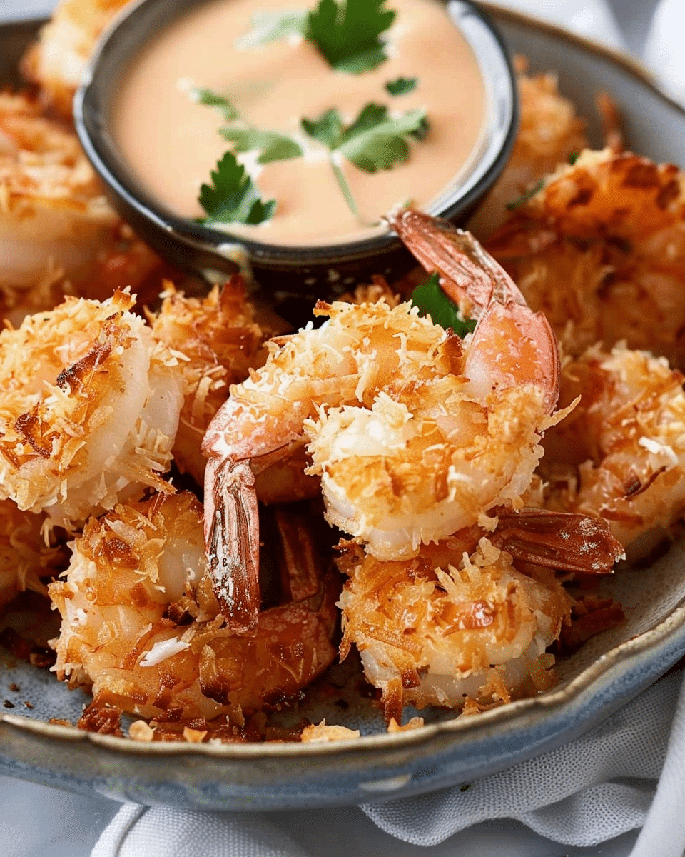 Coconut shrimp is a tropical-inspired dish featuring juicy shrimp coated in a crisp, golden coconut and panko crust. Perfect as an appetizer or main course, it delivers a delightful balance of sweet and savory flavors with a satisfying crunch.