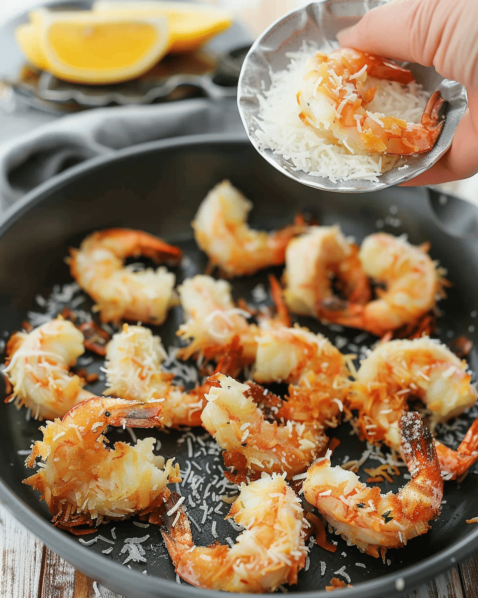 Sweetened coconut gives better browning and flavor than unsweetened.Can be baked or air-fried for a healthier version.Coat shrimp ahead and refrigerate until ready to cook.Use tamari and gluten-free panko for a gluten-free version.Reheat in oven or air fryer for best crispiness.