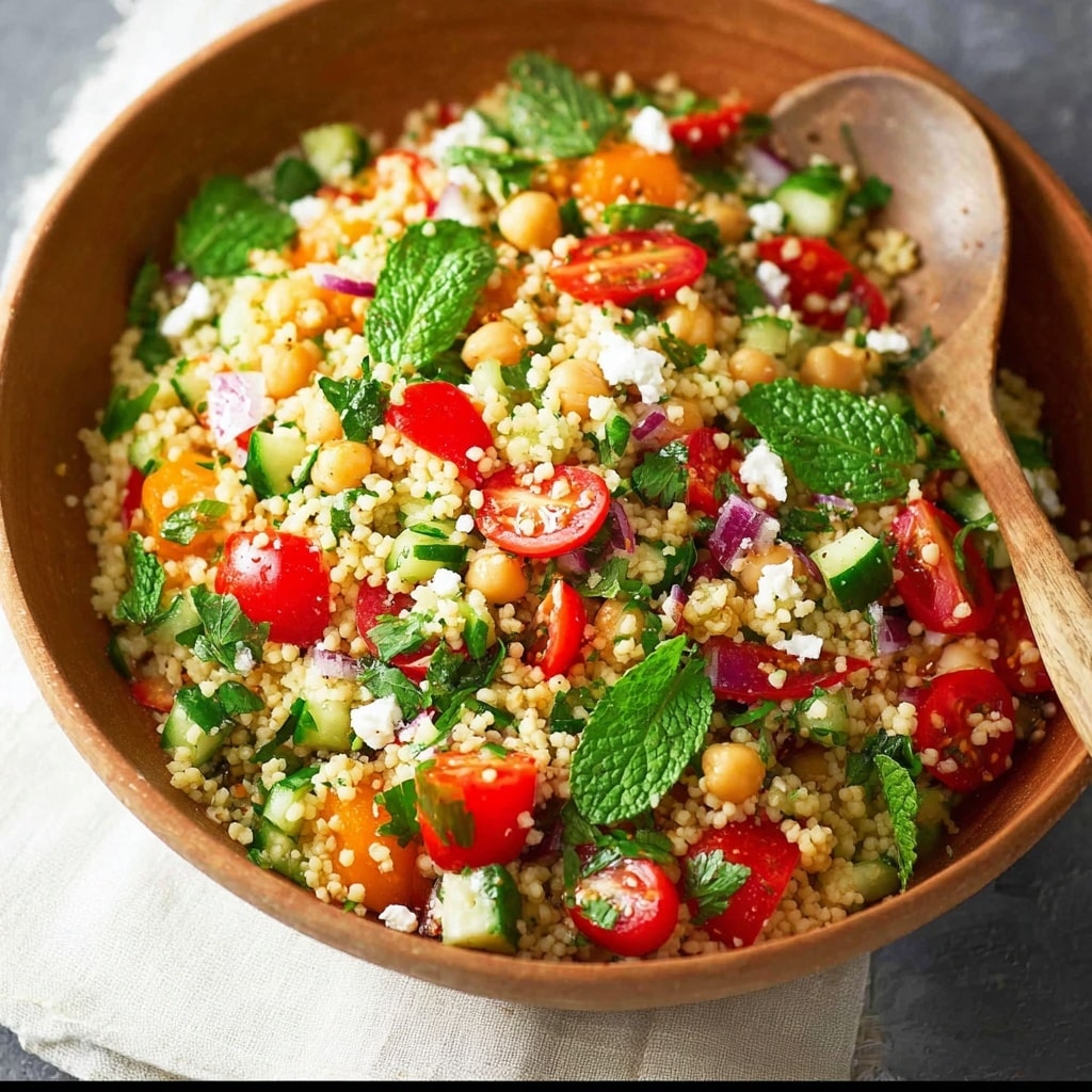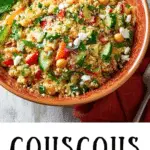 Add chickpeas or grilled chicken for extra protein.Use pearl couscous for a chewier texture.For a Mediterranean twist, mix in sun-dried tomatoes, olives, or capers.Best served cold or at room temperature, but can be warmed slightly if preferred.Add herbs and cheese just before serving for the freshest flavor.
