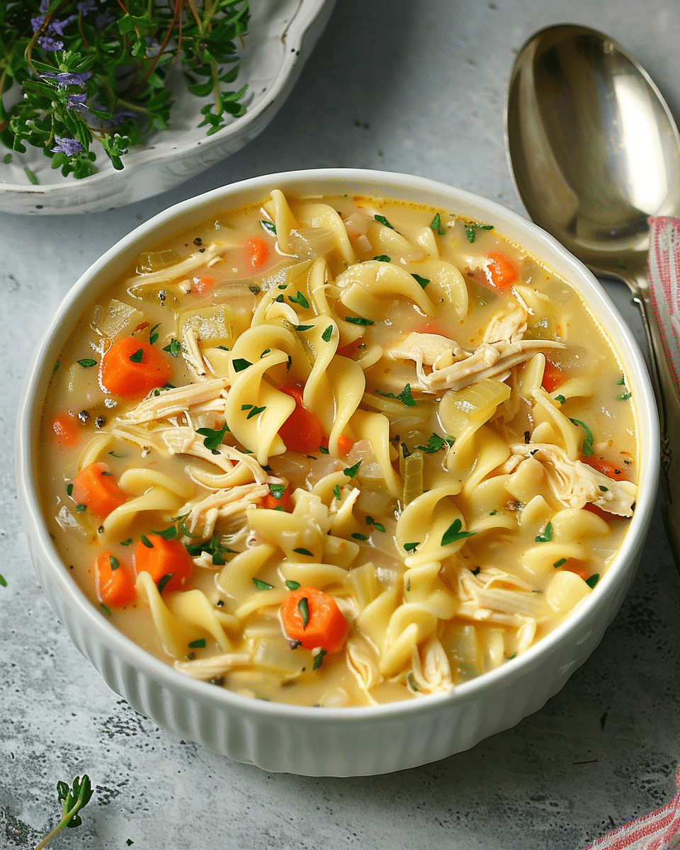Crack Chicken Noodle Soup is a rich and creamy twist on classic chicken noodle soup, combining tender chicken, egg noodles, ranch seasoning, cream cheese, and cheddar for a comforting, flavor-packed meal the whole family will love.